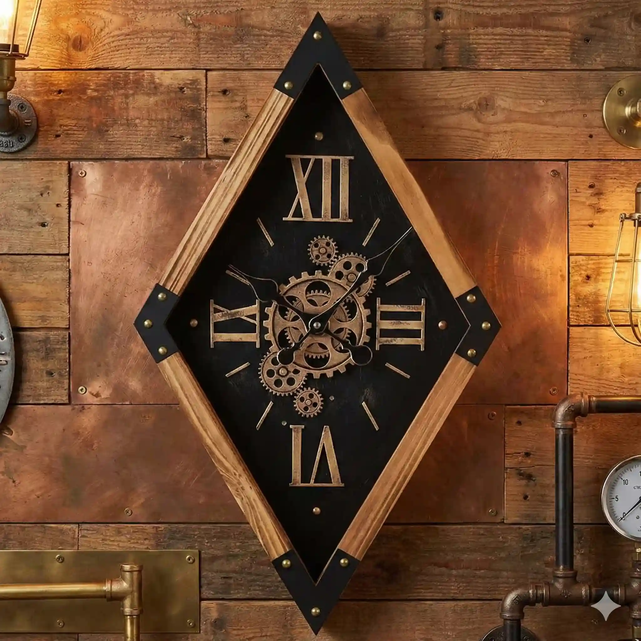 نوعساعت دیواری فلزی با فرم لوزی و چرخ‌دنده‌ای