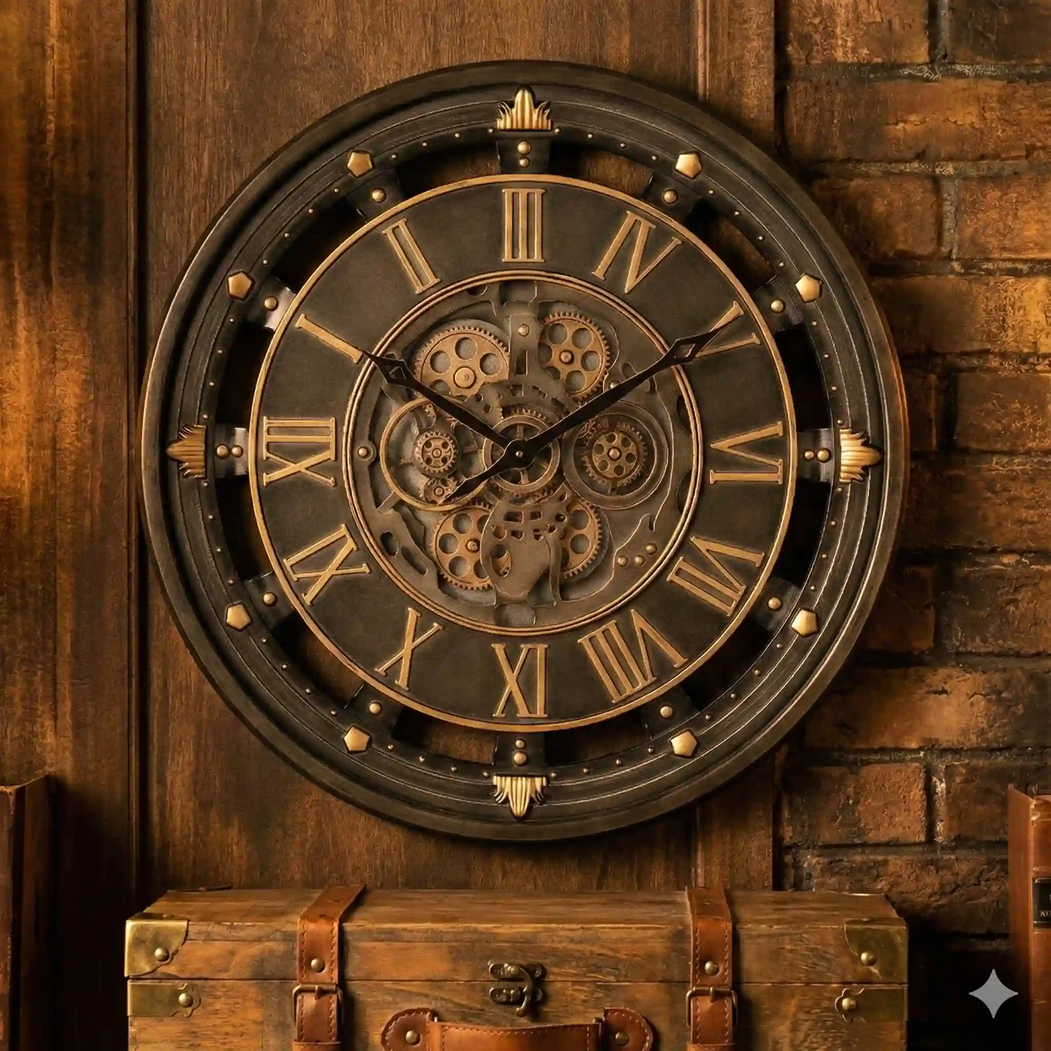 بدنه ساعت دیواری والتر 7125 از فلز با فینیش مسی گرم ساخته شده که هم استحکام بالایی دارد و هم جلوهای لوکس و متفاوت به دیوار میدهد. اعداد یونانی برجسته روی قاب، در کنار صفحه تیره و چرخدندههای نمایان، ترکیبی از سبک کلاسیک، صنعتی گرم و دکوراسیونهای مدرن را ایجاد میکنند؛ مدلی که روی دیوارهای اصلی نشیمن، بالای مبل یا کنسول، فوراً به چشم میآید.