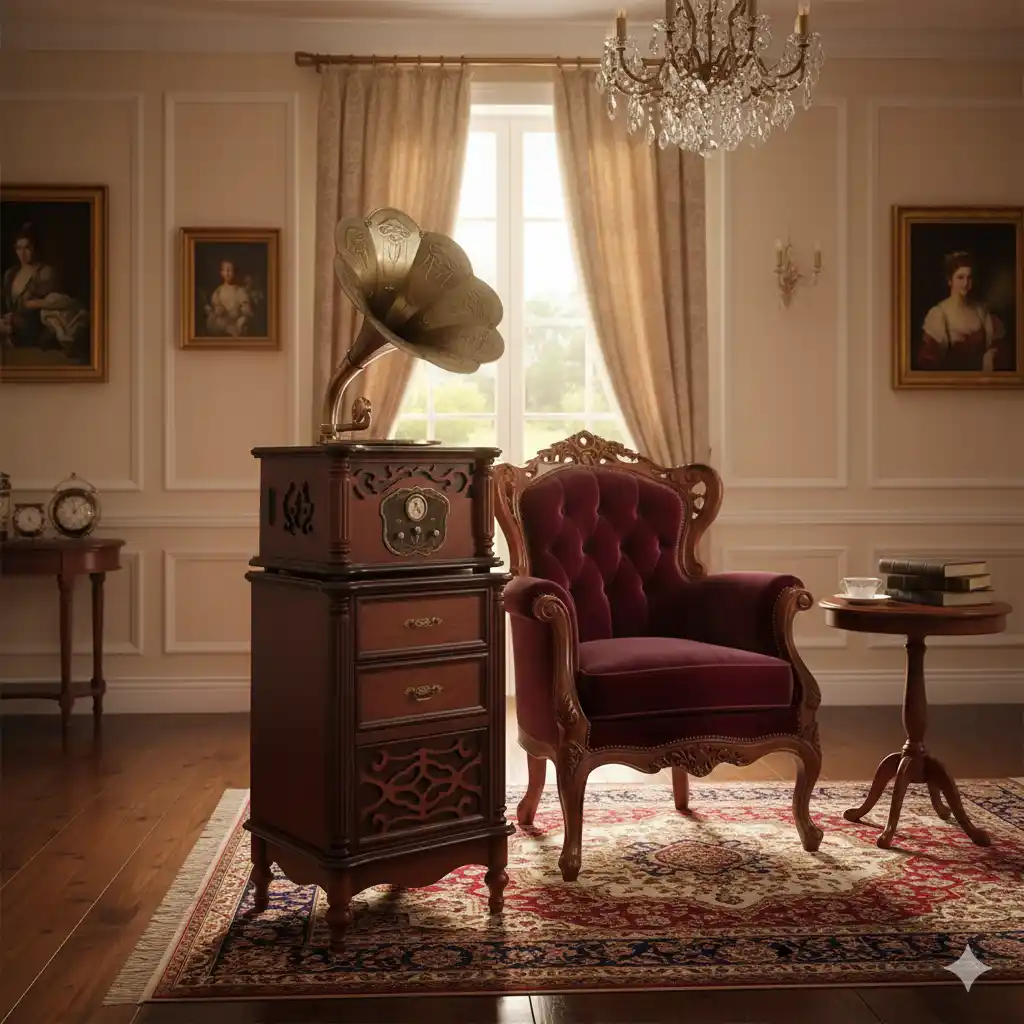 پایههای گرامافون نیز با طرحی ظریف طراحی شدهاند و ظاهر کلاسیک دستگاه را کامل میکنند. این طراحی باعث میشود گرامافون در کنار مبلمان و دکور پذیرایی، بسیار چشمگیر دیده شود.