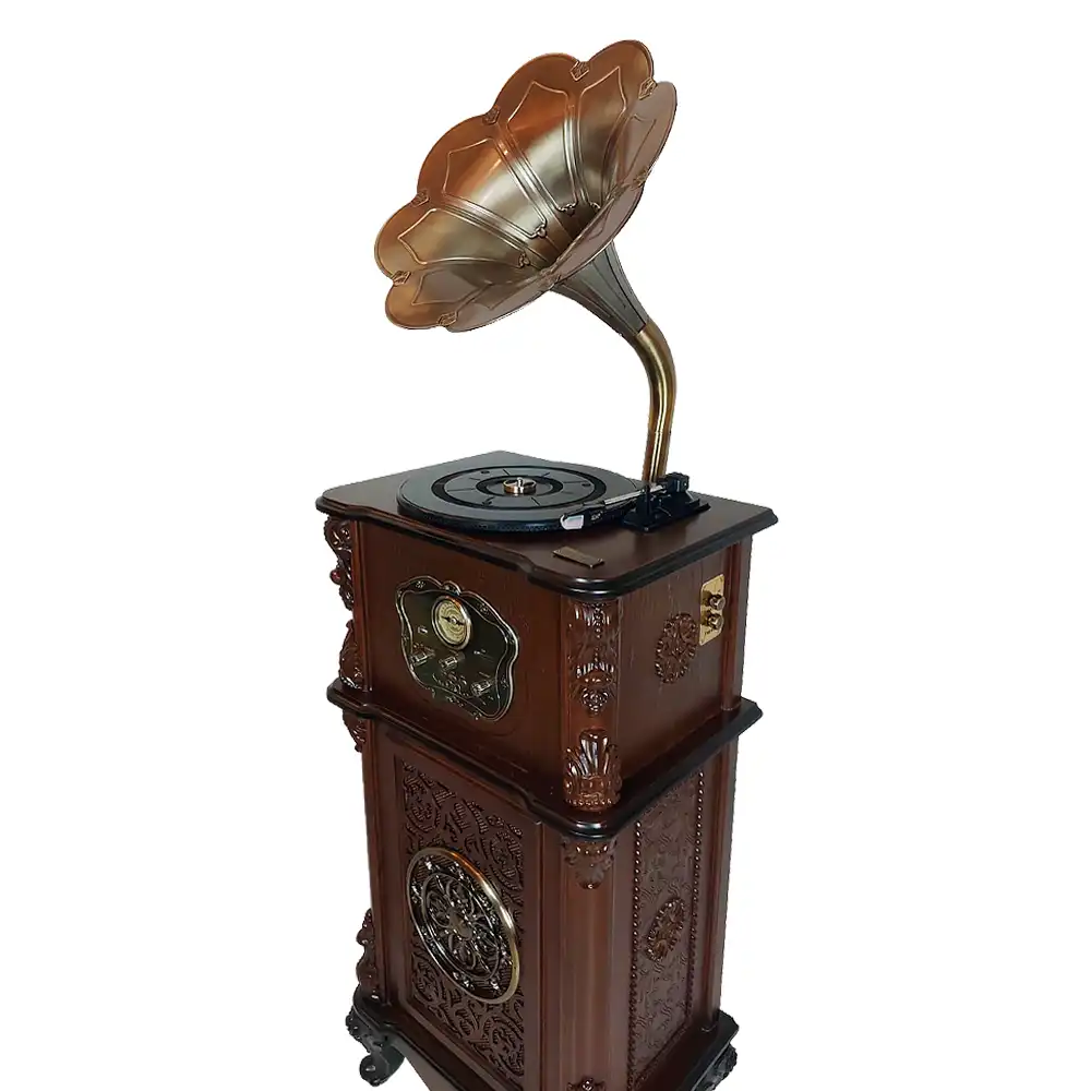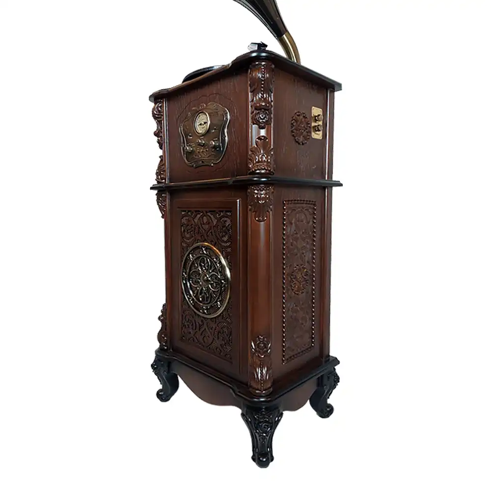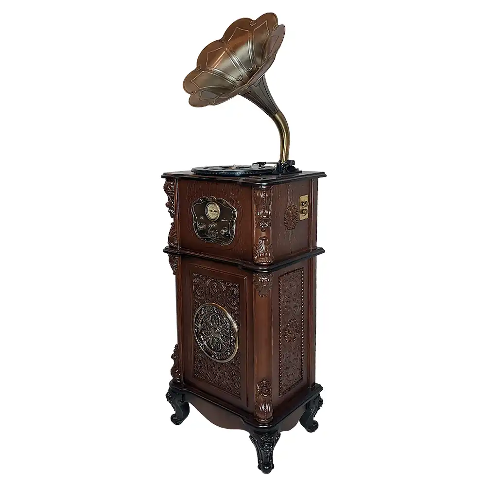 گرامافون والتر مدل 3512 پلاس با شیپور فلزی – نمای کنار دستگاه