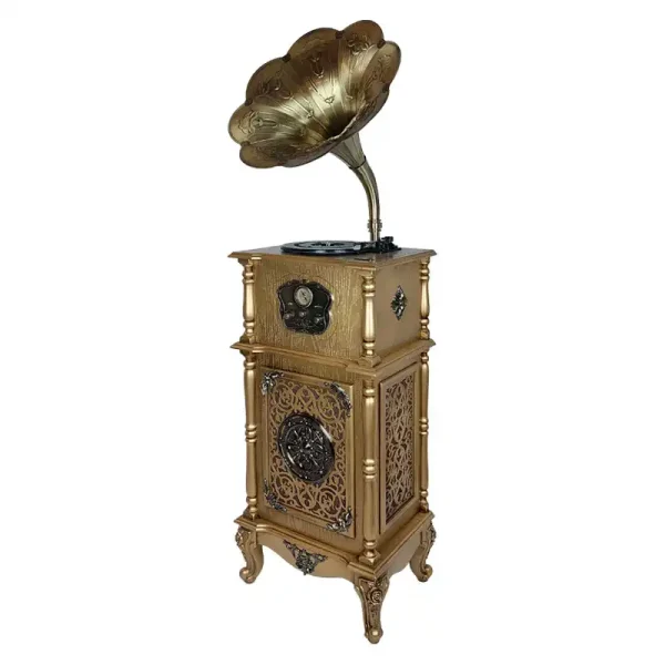 گرامافون کلاسیک والتر مدل 2511 با بدنه طلایی و شیپور مسی،